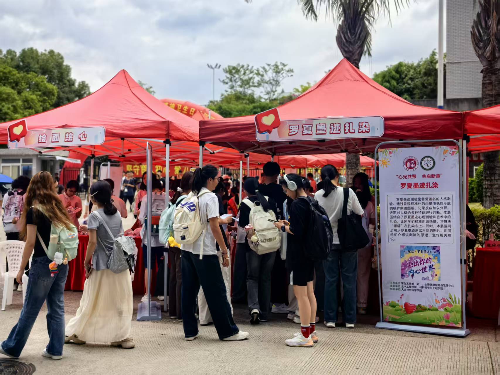 当天,学校在多个校区举办了心理汇、心理游园会、心灵加油站等各具特色的主题活动。心理汇以多展区互动体验为特色,集结了各学院品牌心理活动,打造了一个集互动体验、知识科普、多元打卡于一体的“心理乐园”。互动体验区聚焦“减压获快乐”,通过减压海洋瓶DIY工作坊、情绪调味吧、心理面具DIY、植愈时光、罗夏墨迹扎染、自然治愈落叶贴、心理盲盒、“泥”的新世界等一系列趣味游戏让学生在体验中轻松掌握心理调适方法;知识科普区通过寓教于乐的方式,将心理健康知识、生命守门员知识融入体验与实践中,提升学生的知识获得感;多元打卡区则秉持“五育育心”理念,通过四格心理漫画、解忧调色盘、心灵刺绣等线上线下结合的打卡任务,促进学生身心全面发展。