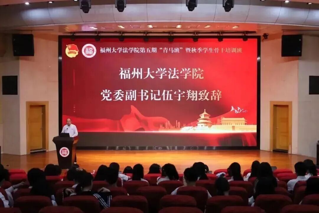 10月23日,福州大学法学院第五期“青马工程”大学生骨干培训班开班仪式及首日课程在模拟法庭顺利举行。学院党委副书记伍宇翔、团委副书记李丹红及全体学员参加本次活动。活动伊始,伍宇翔副书记在开班仪式上发表讲话,勉励学员坚定理想信念、锤炼政治品格。第一讲由李丹红老师主讲,她以互动小游戏引入,围绕“学生工作中的沟通表达与执行闭环”展开培训,内容详实,重点突出。第二讲“青年讲廉”主题宣讲由五位学生党员骨干依次进行,结合学习中央八项规定精神感悟,阐释廉洁自律的重要性,展现了学生骨干的示范引领作用。本次培训有效提升了学员的政治素养与履职能力,进一步强化了学生骨干的思想认同与责任担当,为培养“政治坚定、素质全面”的新时代青年奠定了坚实基础。(法学院李丹红供稿)