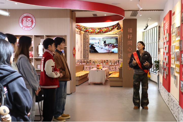 在刘敏榕工作室讲解员的带领下,同学们依次参观三爱读书社、党建区、铸牢区、民族团结进步故事墙、文化融合区、石榴籽公园等区域,深入了解工作室十年来在民族学生教育管理服务上的丰硕成果与典型经验。大家认真聆听工作室在思想引领、学业帮扶、社会实践、文化融合、生活关心等方面的工作举措,近距离观赏民族服饰、手工艺品、传统乐器与影像资料,在沉浸式体验中感受少数民族非遗文化魅力,深刻体悟 “石榴籽精神”,坚定文化自信与民族团结信念。