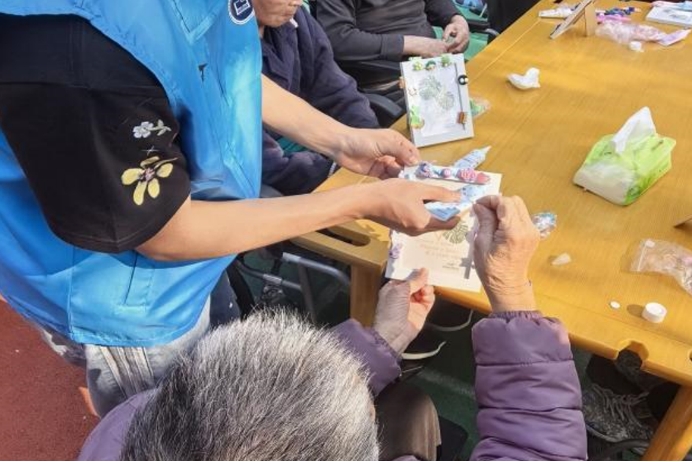 春风透过窗棂,轻拂着老人们专注的脸庞。随着时间的推移,一个个平平无奇的空白相框在大家的巧手下逐渐焕发出新的生机。有的相框上“开出”了立体花朵,有的则被装饰成满载回忆的“故事框”。老人们捧着自己亲手完成的作品,脸上绽放出孩童般灿烂的笑容,纷纷向身边的志愿者讲述着想要把哪位亲人的照片放进这亲手制作的相框里。
