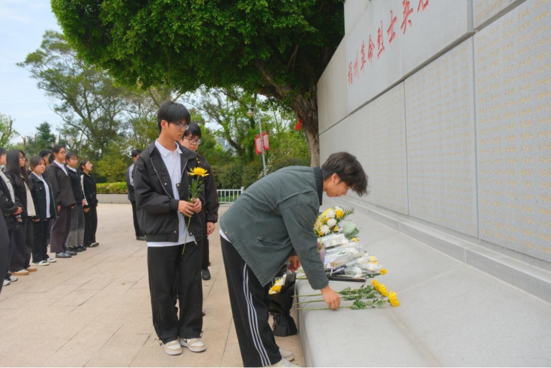苍松翠柏,英魂长存。在庄严肃穆的革命英烈纪念碑前,全体师生整齐肃立,手捧鲜花,怀着崇敬之情举行祭奠仪式。伴随激昂旋律,师生齐声高唱国歌,歌声中饱含对祖国的赤诚与热爱。国歌奏毕,全体默哀并深深三鞠躬,向为民族独立和人民解放事业英勇献身的先烈们致以沉痛哀悼。随后,师生依次敬献鲜花,绕行瞻仰烈士纪念碑及福州革命烈士英名墙,将鲜花轻放于墙前,每一次弯腰、每一步前行,都承载着无尽的追思与崇高的敬意。