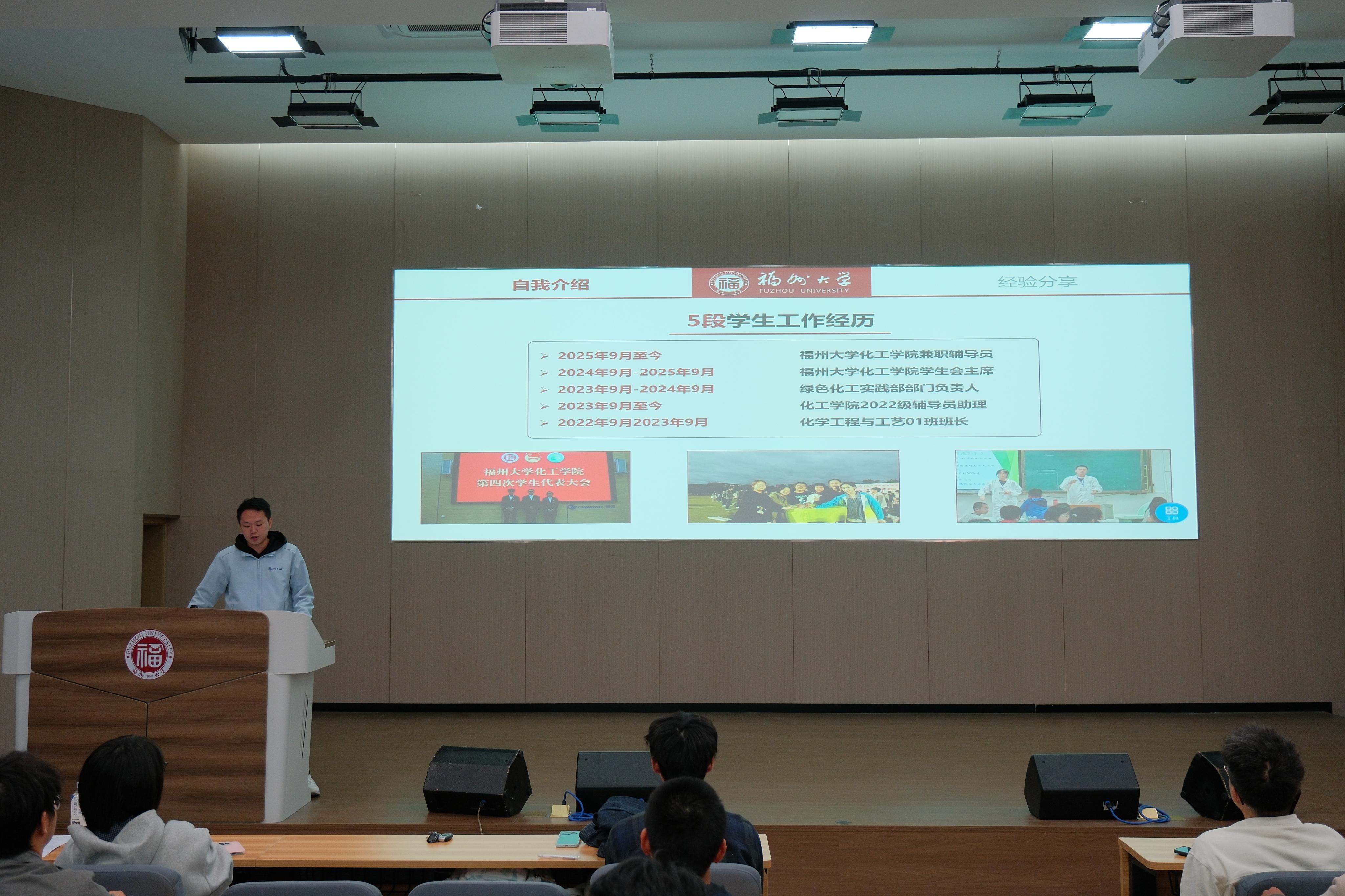 12月4日,由学生工作部(处)主办、化工学院承办的《福大青年说》第八期 “创新之星”、“国奖达人”分享会在铜盘校区科报厅B顺利举行。